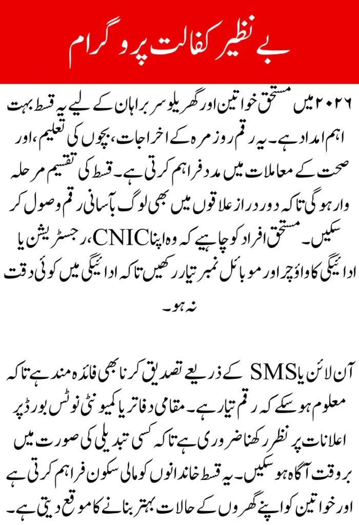 Eligibility remains focused on registered women from low-income households. Beneficiaries must have verified CNICs and up-to-date registration details. New applicants who complete verification before the cutoff date may also qualify for the payment if approved in time.