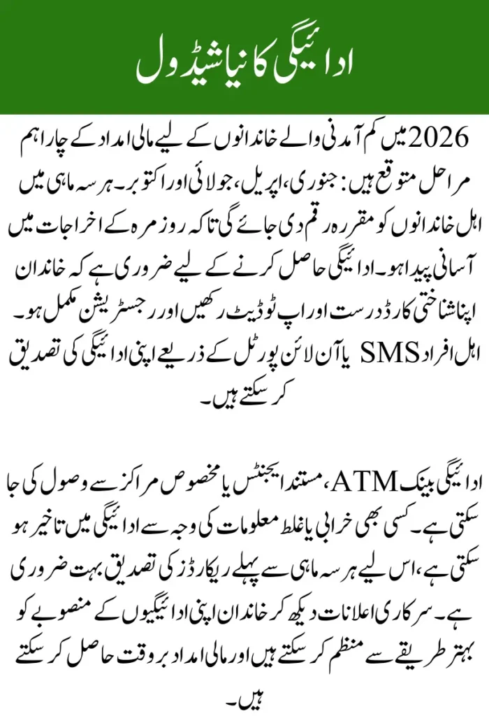 The Benazir Kafalat 13500 Qist is distributed in four main cycles each year. For 2026, the expected schedule is as follows: