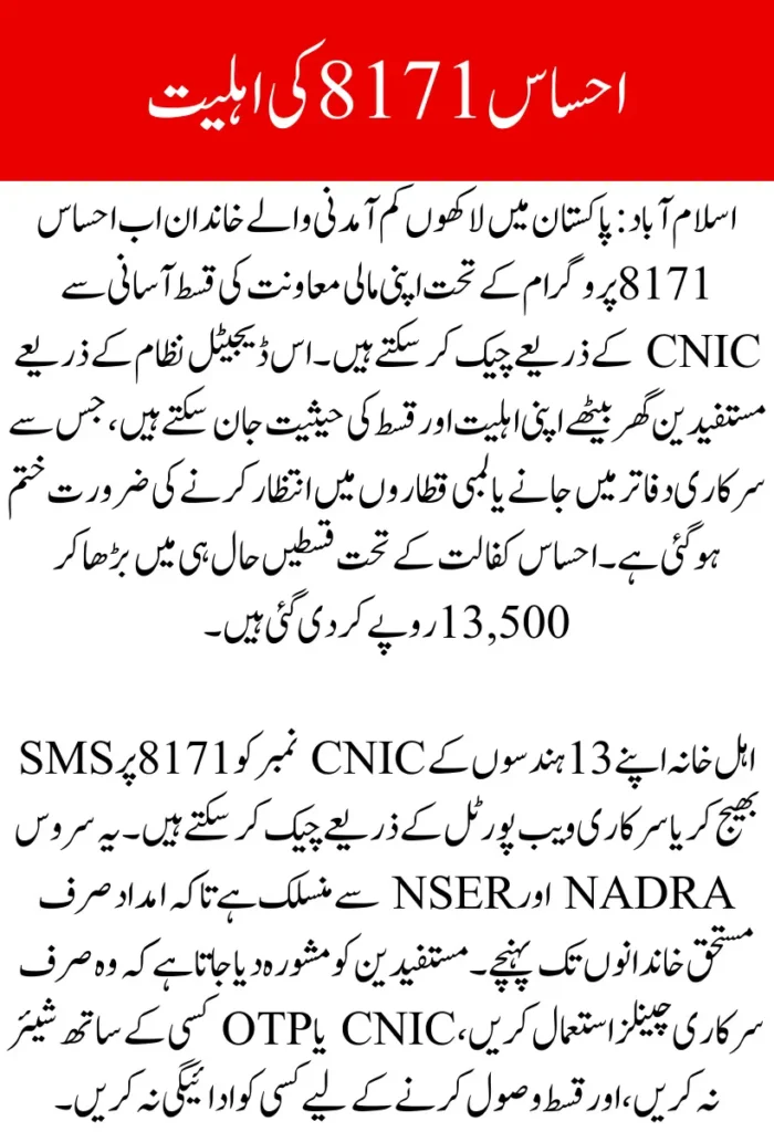 Verify Ehsaas 8171 Eligibility Online