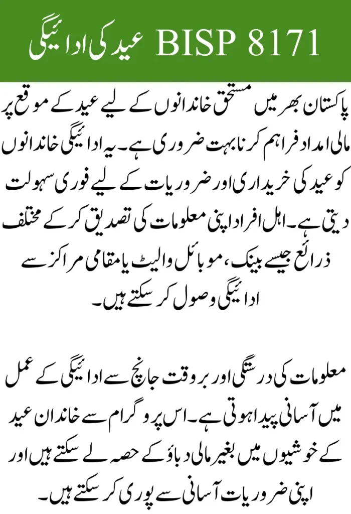 Receiving the BISP 8171 Eid Payment allows families to celebrate Eid with dignity and peace of mind.