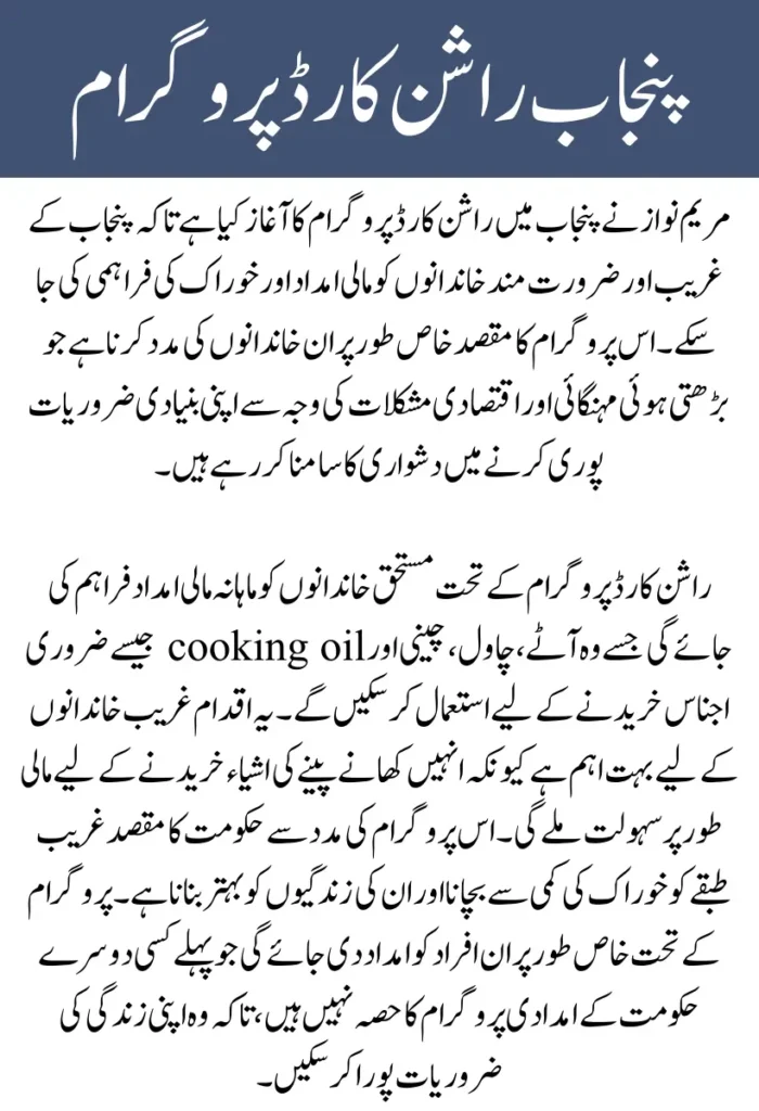 The Punjab Ration Card program represents a crucial step toward addressing food insecurity and providing financial support to low-income families in Punjab. By targeting vulnerable households and providing them with access to essential food supplies, the program will help alleviate the hardships faced by many families in the province. As the program continues to expand and reach more families, it will contribute to building a more resilient and socially just society in Punjab.